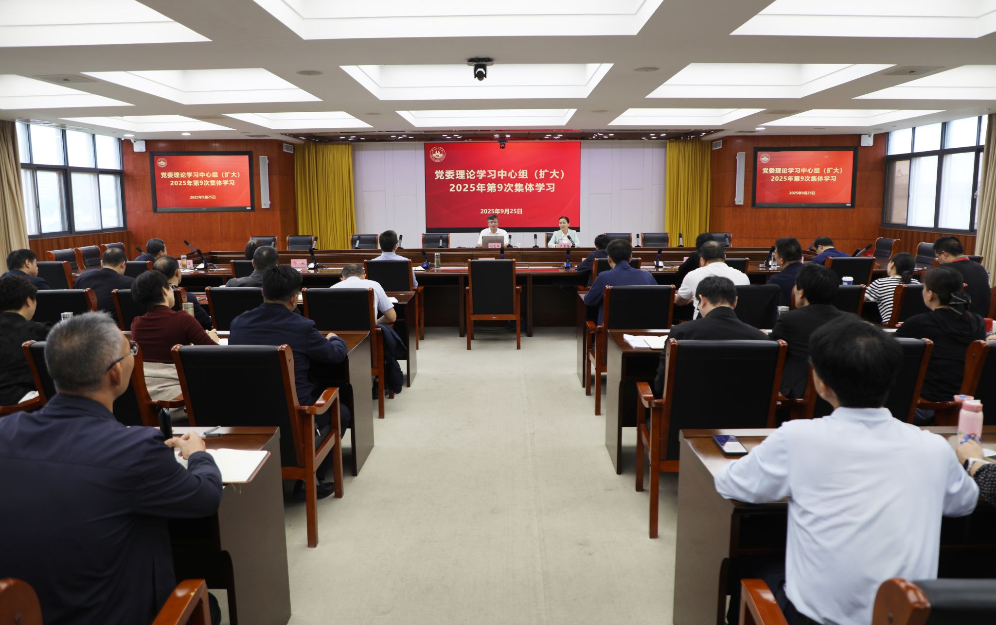 本网讯:9月25日下午,学校党委理论学习中心组(扩大)2025年第9次集体学习在明德楼六楼会议室举行。党委书记卢雪梅主持学习并讲话。全体校领导、全体中层正职干部参加学习。