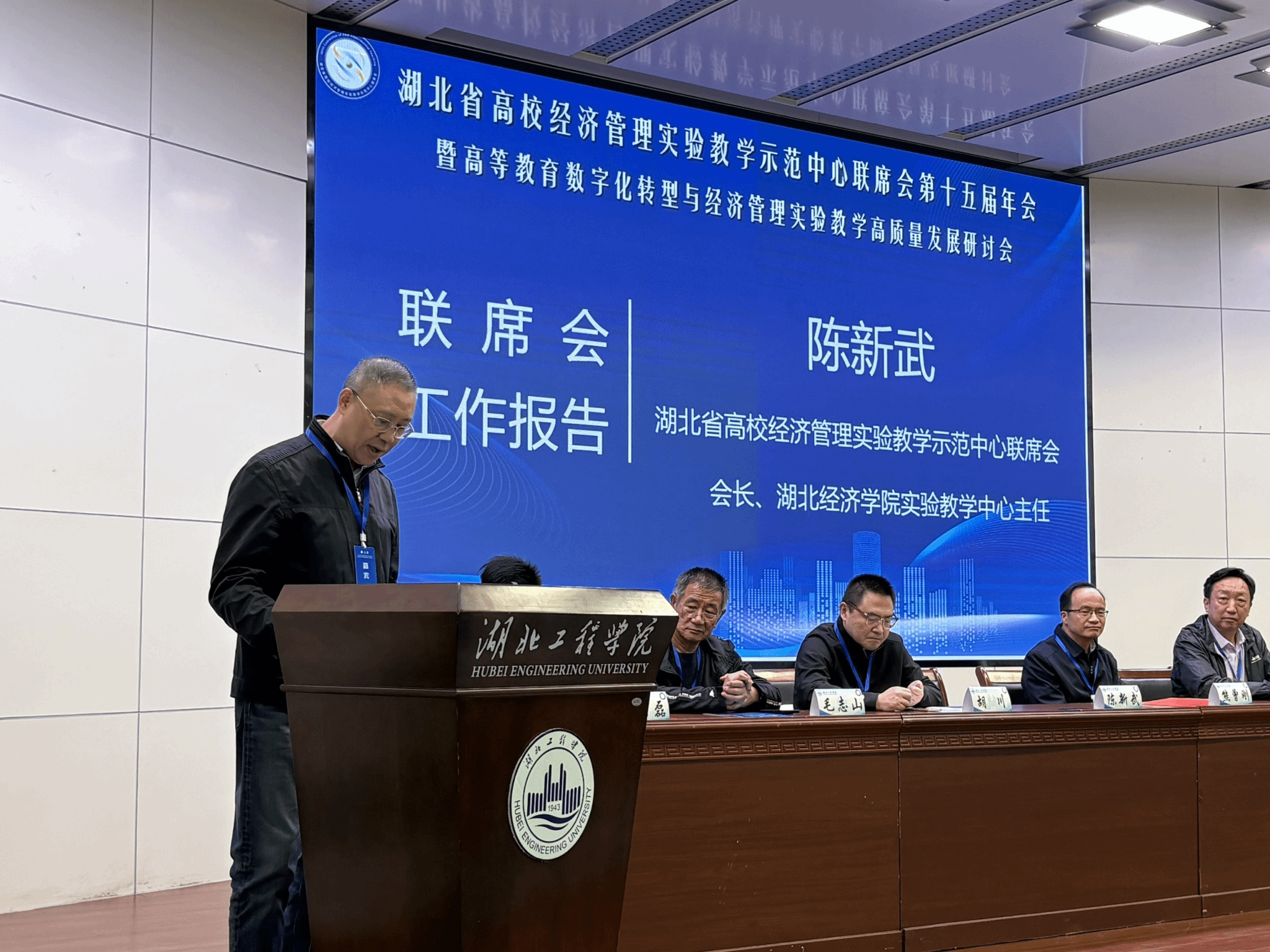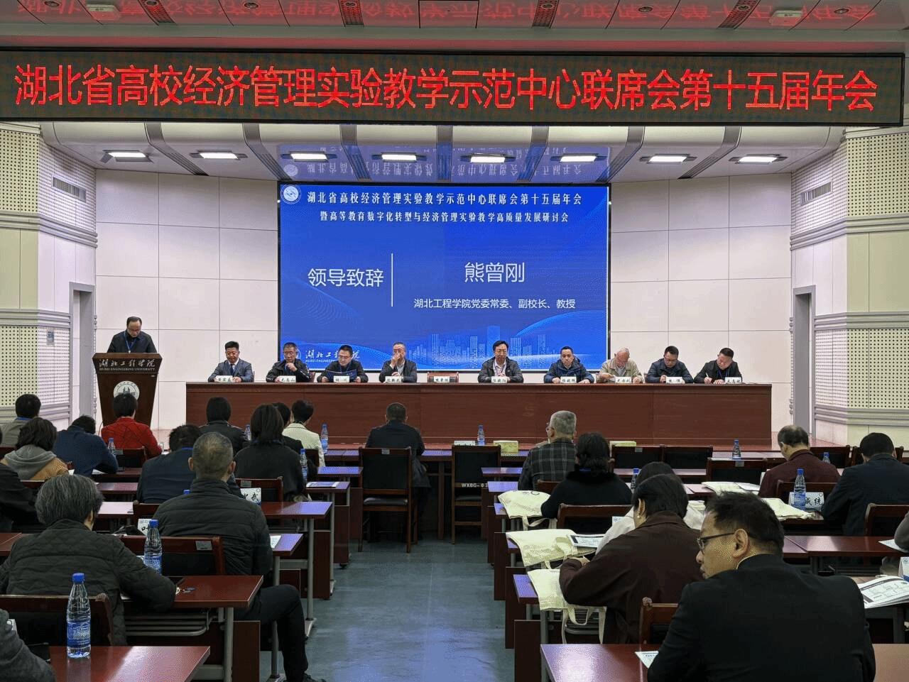 本网讯:11月15日,由湖北省高校经济管理实验教学示范中心联席会主办、湖北工程学院经济与管理学院承办的“湖北省高校经济管理实验教学示范中心联席会第十五届年会暨高等教育数字化转型与经济管理实验教学高质量发展研讨会”在湖北工程学院文学楼报告厅召开。来自联席会及武汉大学、中南财经政法大学、武汉理工大学、湖北经济学院等40余所高校的70多位领导、专家及老师齐聚一堂,共话“AI赋能经管类实验教学”的创新路径。