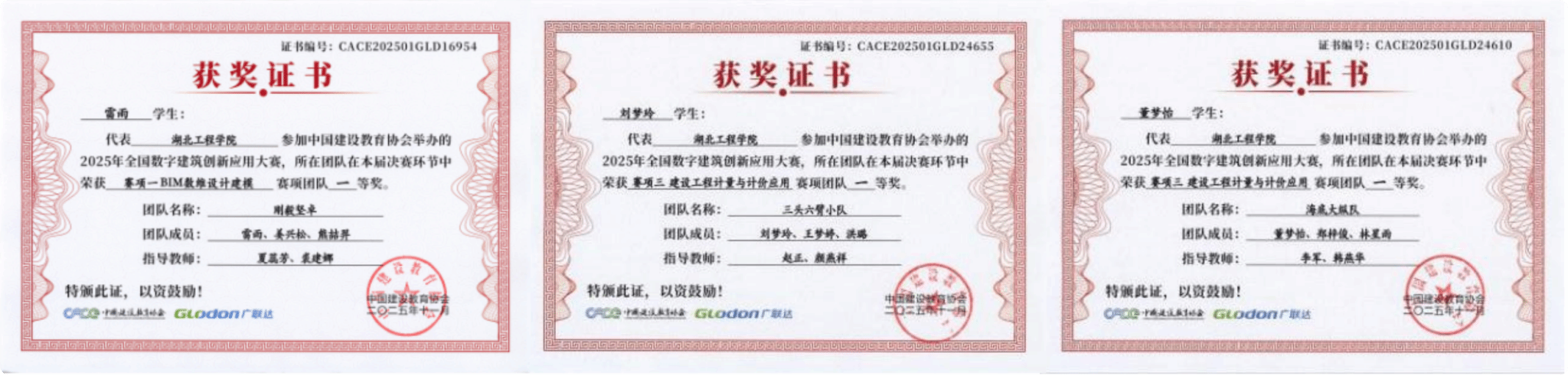 本网讯:近日,2025年全国数字建筑创新应用大赛圆满落幕。我校土木工程学院学子凭借扎实的专业素养、突出的创新能力与出色的团队协作,在大赛中奋勇争先、捷报频传,共斩获全国一等奖3项、三等奖5项,充分展现了我校在数字建筑领域的人才培养成效与学科建设实力。