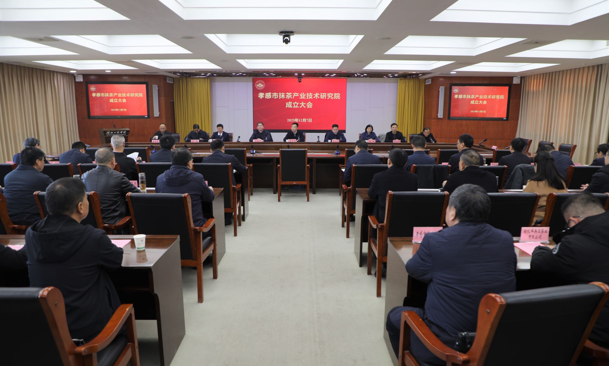 本网讯:12月7日,孝感市抹茶产业技术研究院在我校举办成立大会,孝感市委副书记王云清、副市长石必成出席,孝感市科学技术局、农业农村局、农业科学院、农业技术推广中心以及孝南区、大悟县、孝昌县等有关单位负责人和茶企代表参加会议。我校党委副书记、校长汪海波致辞,副校长李渺及科学技术处、教务处和生命科学技术学院负责人参加会议。会议由孝感市委副秘书长赵岳军主持。