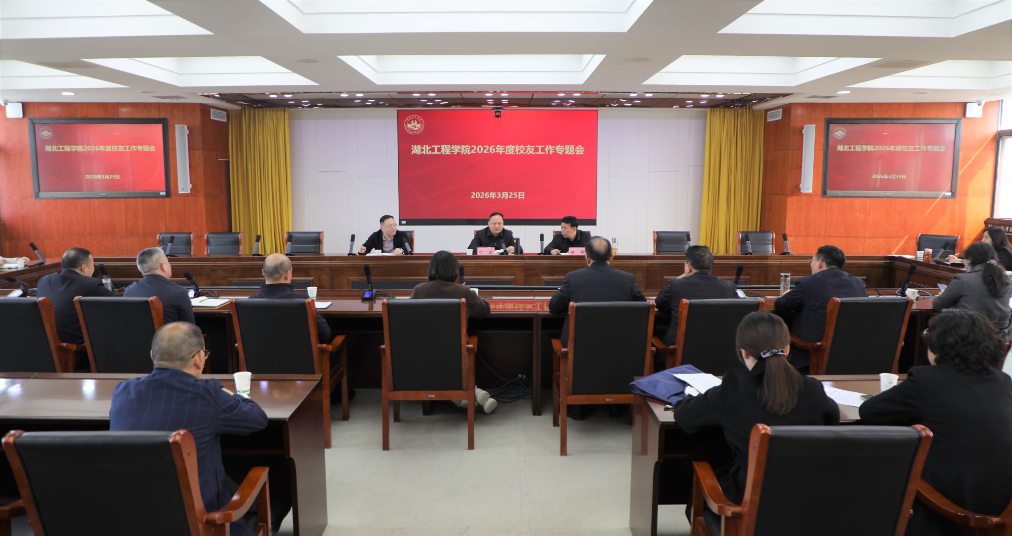 本网讯:3月25日,学校2026年度校友工作专题会议在明德楼六楼会议室召开。学校党委副书记、校长付宏出席会议并讲话,党委副书记、校友会副会长陈伟主持会议。各教学学院、科技处、招就处等单位主要负责人及校友办全体工作人员参加会议。