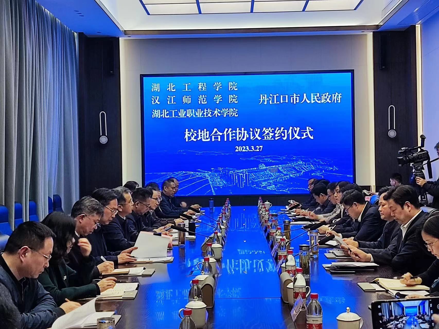 3月27日,签约仪式在丹江口市汉丹凯瑞国际酒店会议中心举行,党委常委、统战部部长熊曾刚代表湖北工程学院与丹江市人民政府签订了“湖北工程学院帮扶丹江口市第二中学框架协议”。