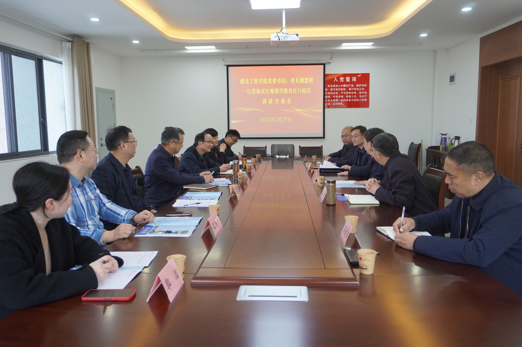 本网讯:3月27日至29日,学校党委书记、校长潘慧明率队考察汉江师范学院丹江口校区、与丹江口市签订县中托管帮扶框架协议并走访看望了丹江口、十堰市校友。党委常委、统战部部长熊曾刚及学校办公室、教务处、校友办负责人陪同参加相关活动。