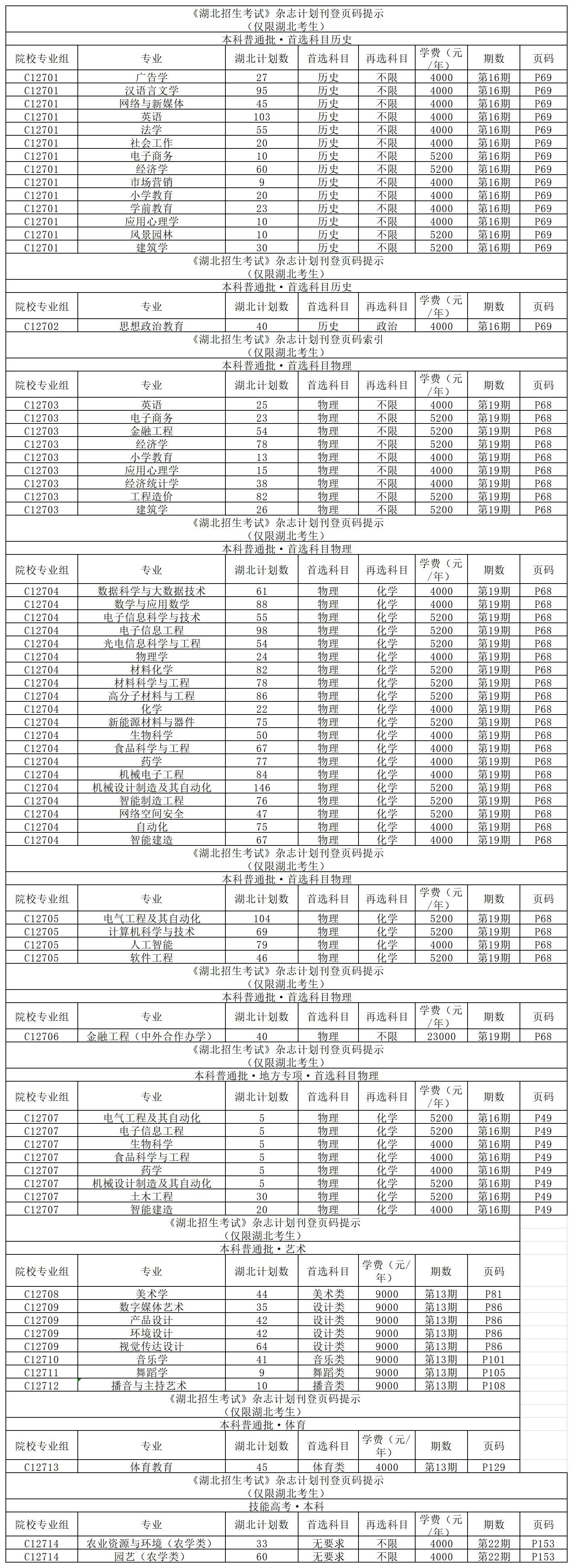 湖北工程学院2025年湖北省院校专业组及招生计划一览表